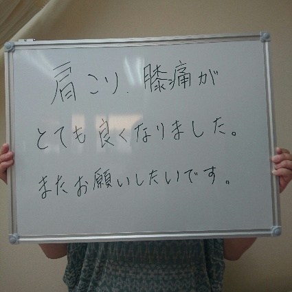 どこに行ってもなかなか良くならなく諦めていたのですが、紹介されて来てみました。初めての治療院だから少し不安でしたけど、痛くなく不思議な技?で膝が凄く楽になりました。